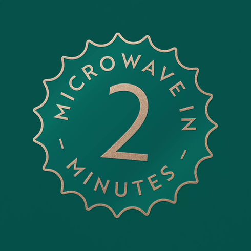 Convenience is highlighted through a softly disruptive, gloss-varnished “Microwave in 2 minutes” seal device.